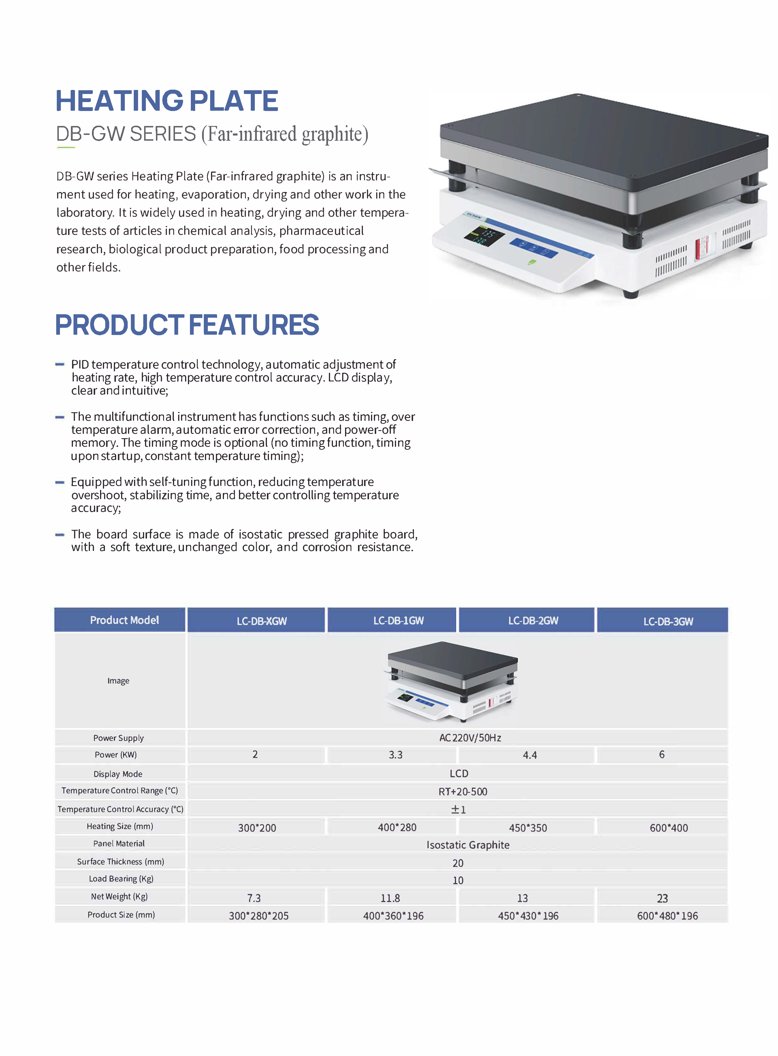 - ใช้เทคโนโลยีควบคุมอุณหภูมิแบบ PID ปรับอัตราการให้ความร้อนอัตโนมัติ ความแม่นยำในการควบคุมอุณหภูมิสูง จอ LCD ชัดเจนและใช้งานง่าย