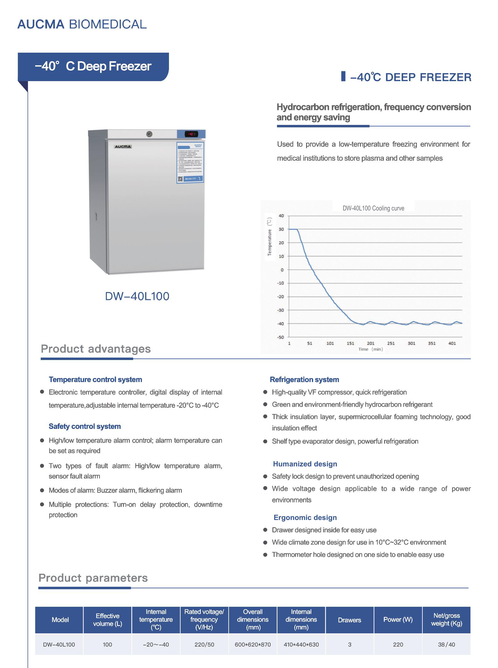 จำหน่าย-รับซ่อม Lab Freezer -40°C รุ่น DW-40L100 ยี่ห้อ AUCMA ขนาด 100 ลิตร