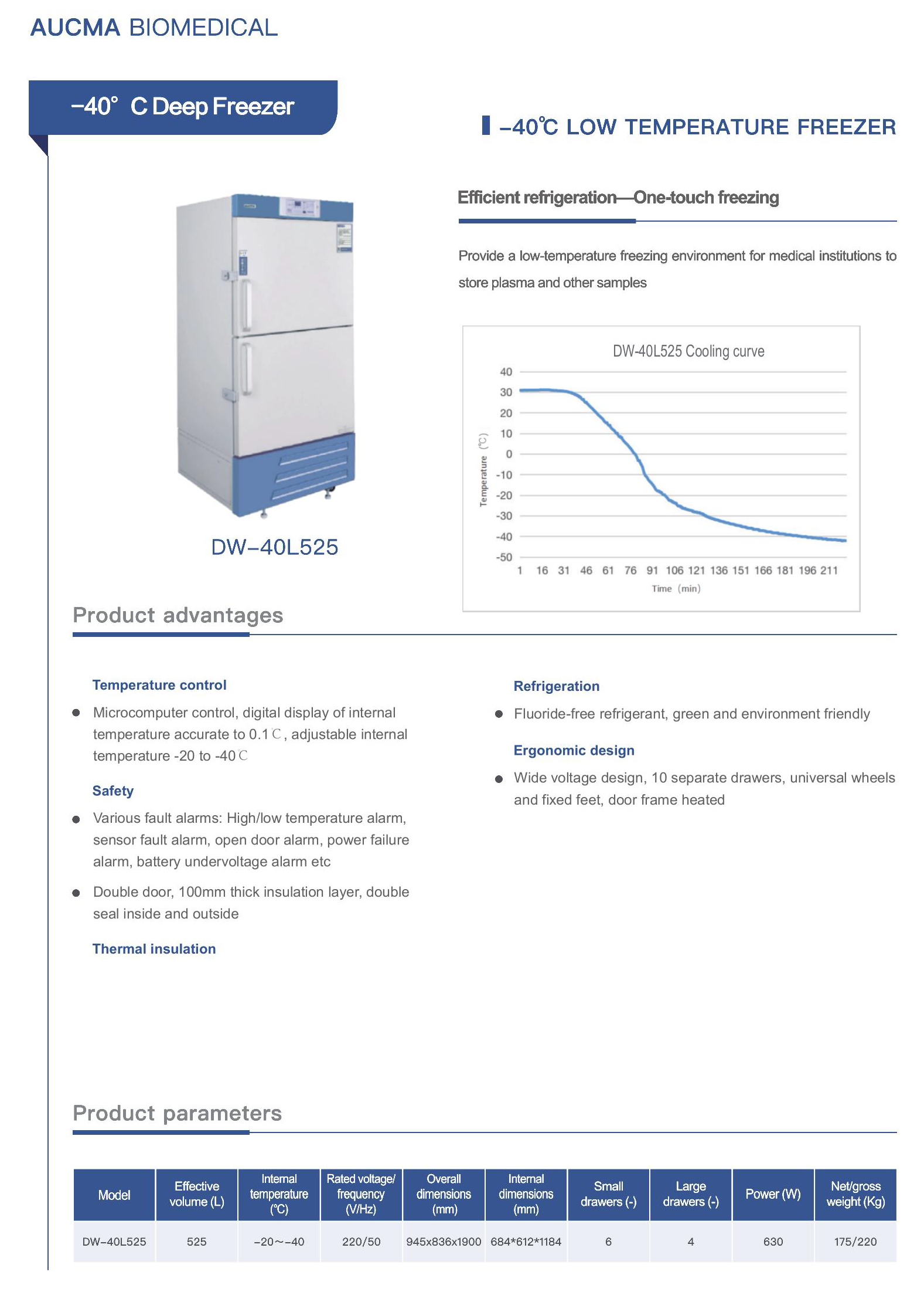 จำหน่าย-รับซ่อม Lab Freezer -40°C รุ่น DW-40L525 ยี่ห้อ AUCMA ขนาด 525 ลิตร