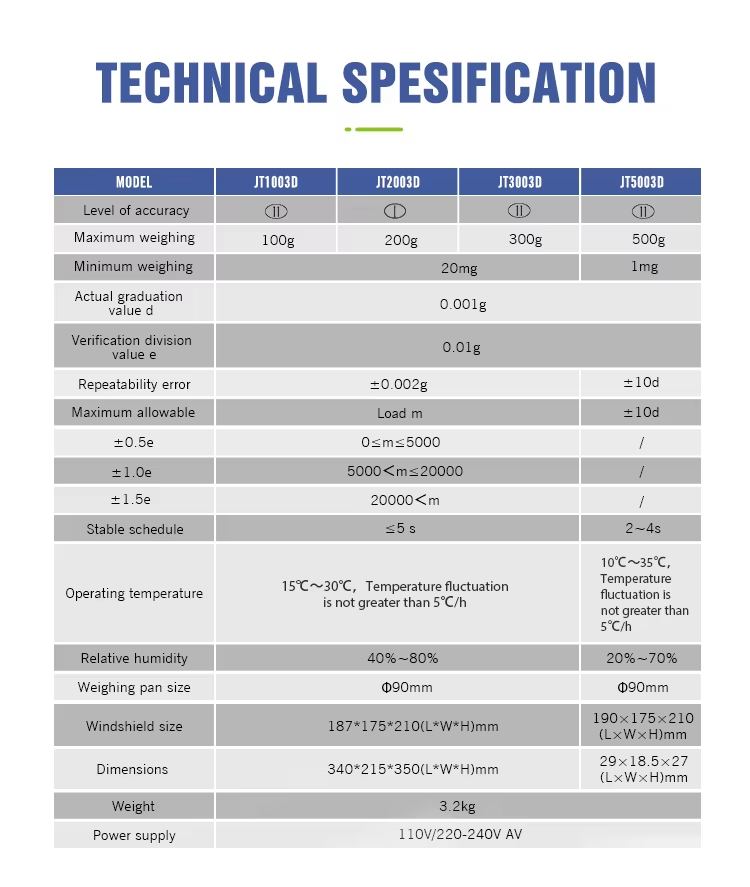 จำหน่าย-รับซ่อม Analytical Balance เครื่องชั่งทศนิยม 3 ตำแหน่ง Min.0.020g. Max.200g. รุ่น JT2003D