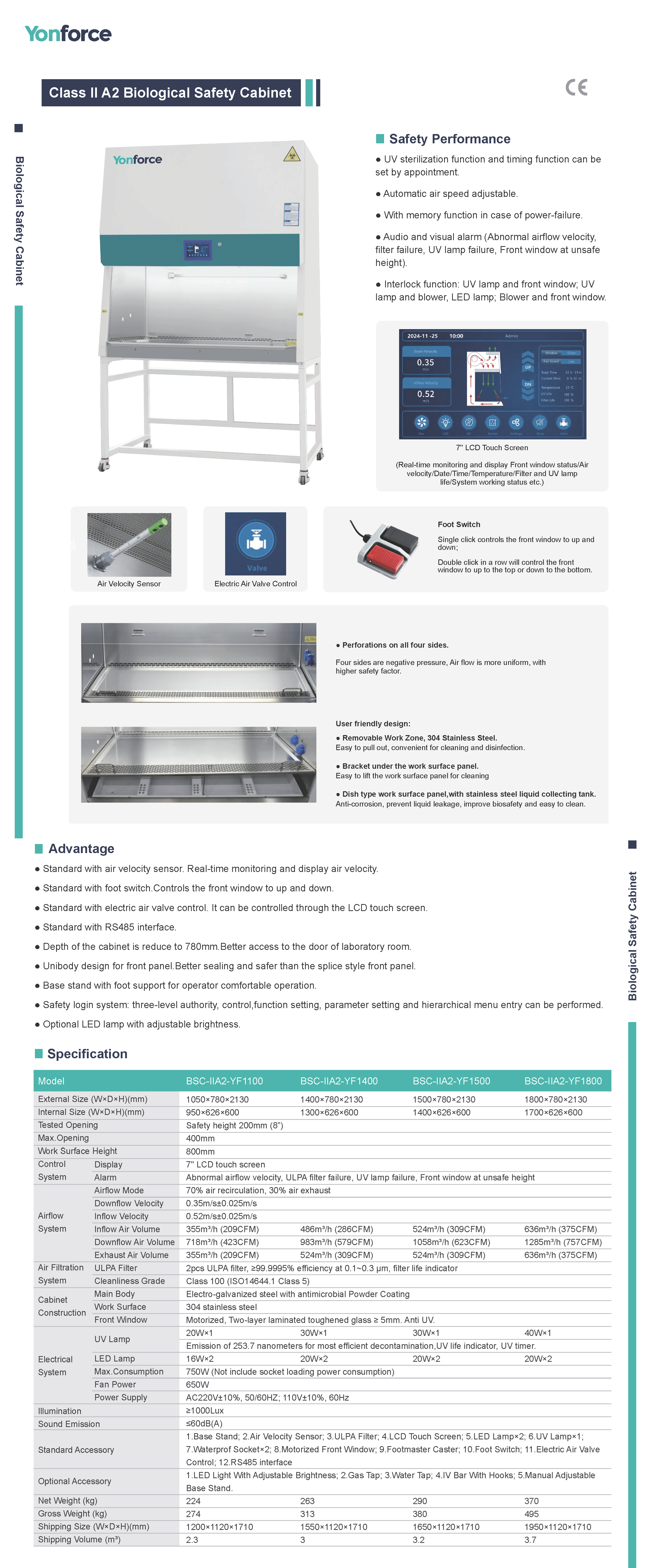 Class II A2 Biological Safety Cabinet รุ่น BSC-IIA2-YF1100