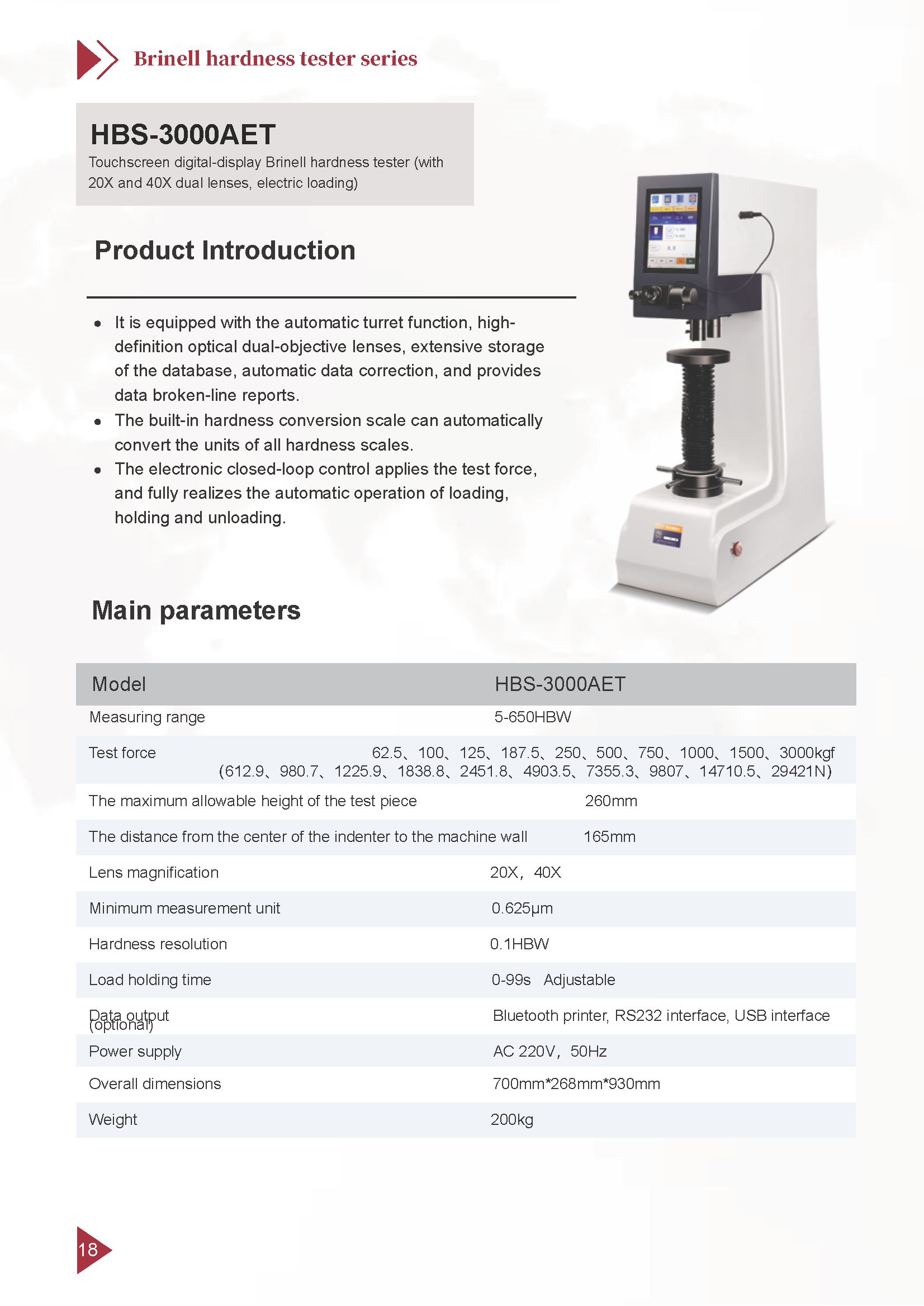 จำหน่าย-รับซ่อม เครื่องวัดความแข็ง Touchscreen digital-display Brinell hardness tester (with 20X and 40X dual lenses, electric loading) รุ่น HBS-3000AET