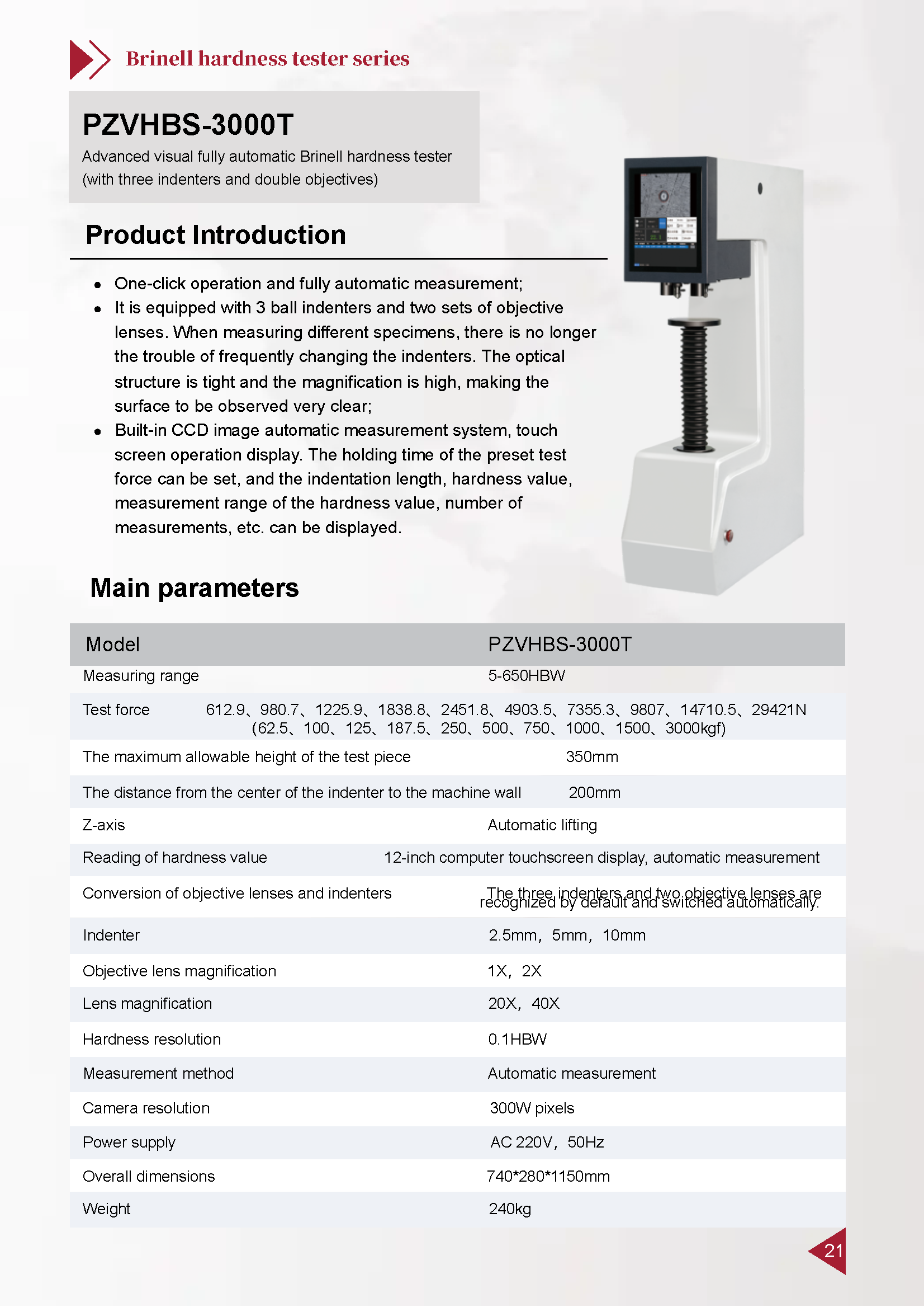 จำหน่าย-รับซ่อม เครื่องวัดความแข็ง Advanced visual fully automatic Brinell hardness tester (with three indenters and double objectives) รุ่น PZVHBS-3000T