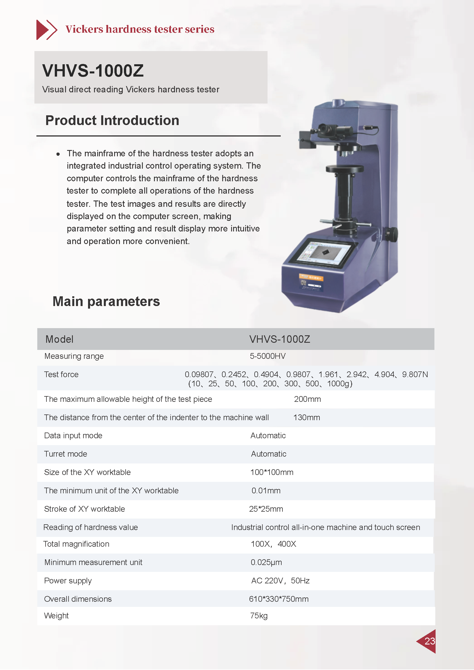 จำหน่าย-รับซ่อม เครื่องวัดความแข็ง Visual direct reading Vickers hardness tester รุ่น VHVS-1000Z