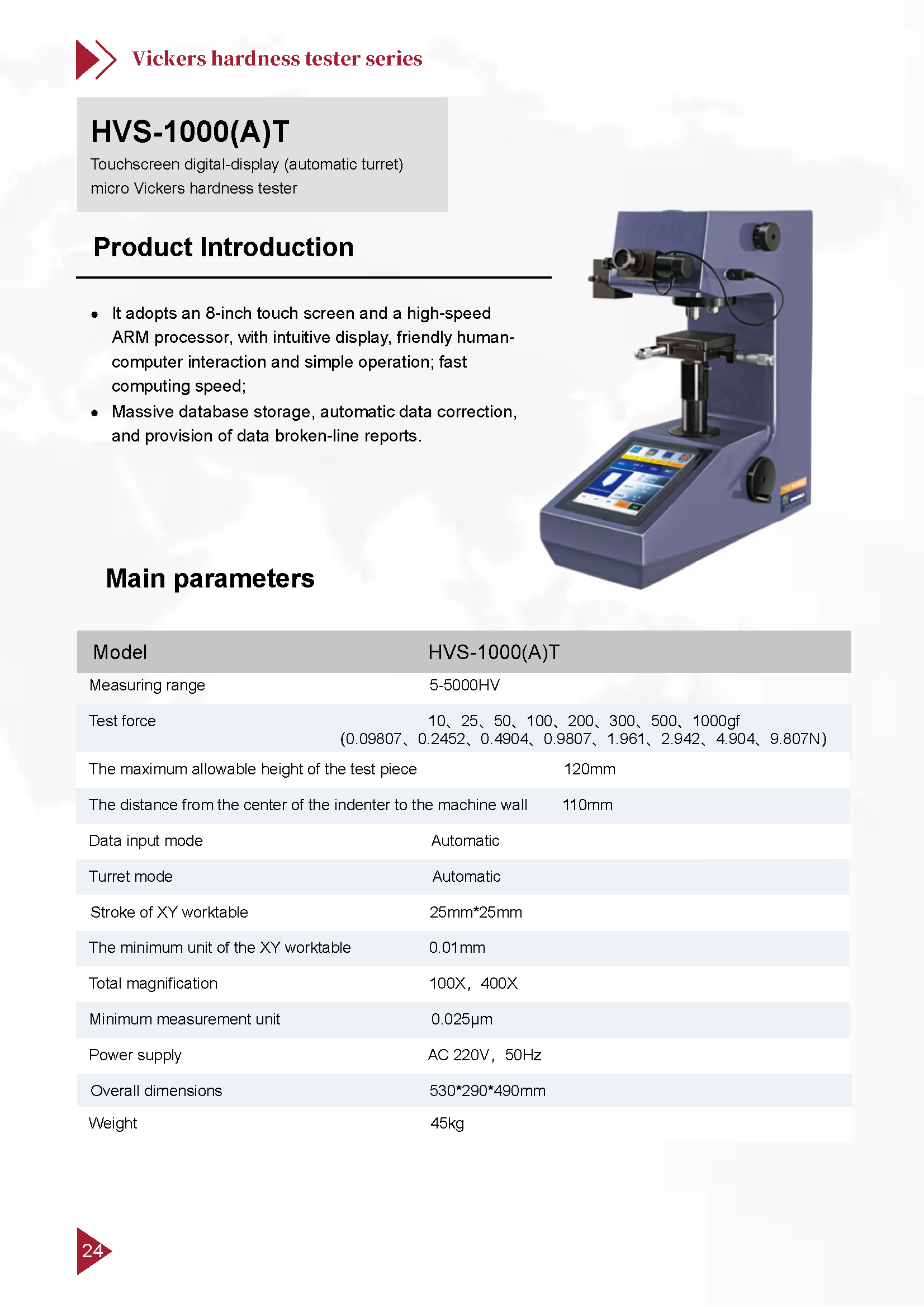 จำหน่าย-รับซ่อม Touchscreen digital-display (automatic turret) micro Vickers hardness tester รุ่น HVS-1000(A)T