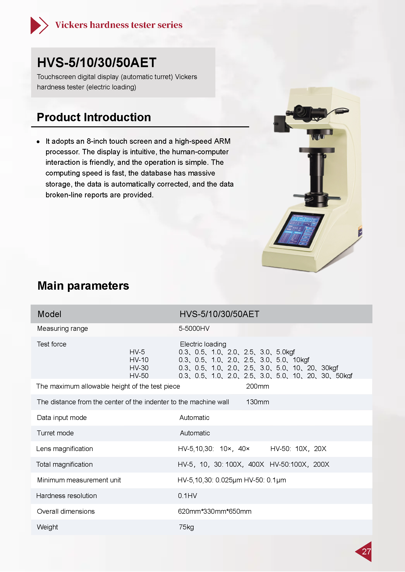 จำหน่าย-รับซ่อม Touchscreen digital display (automatic turret) Vickers hardness tester (electric loading) รุ่น HVS-5/10/30/50AET