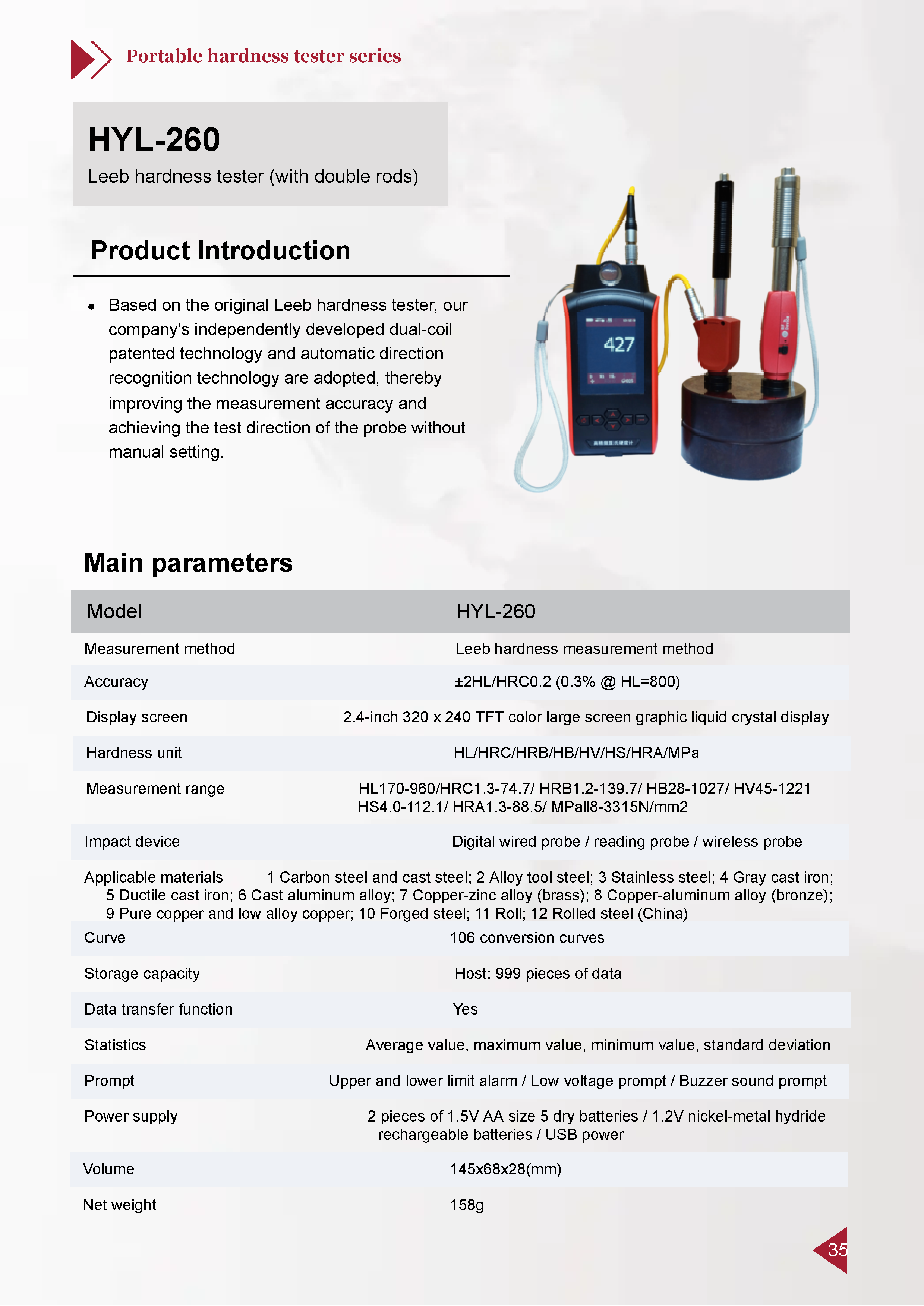 จำหน่าย-รับซ่อม เครื่องวัดความแข็งแบบพกพา Portable hardness tester รุ่น HYL-260